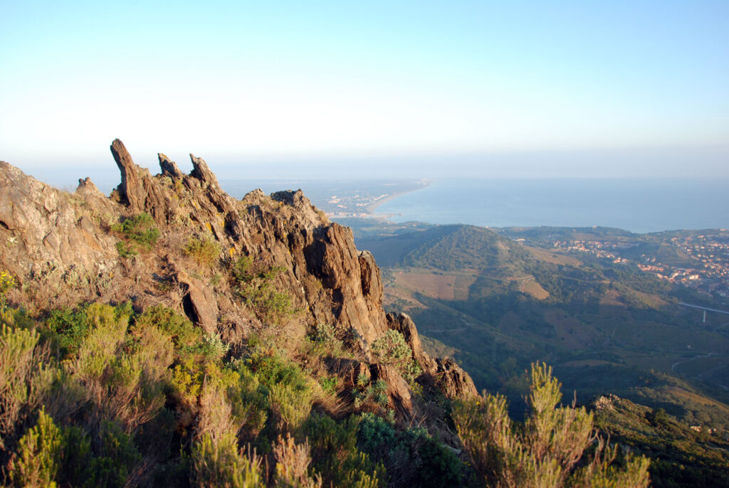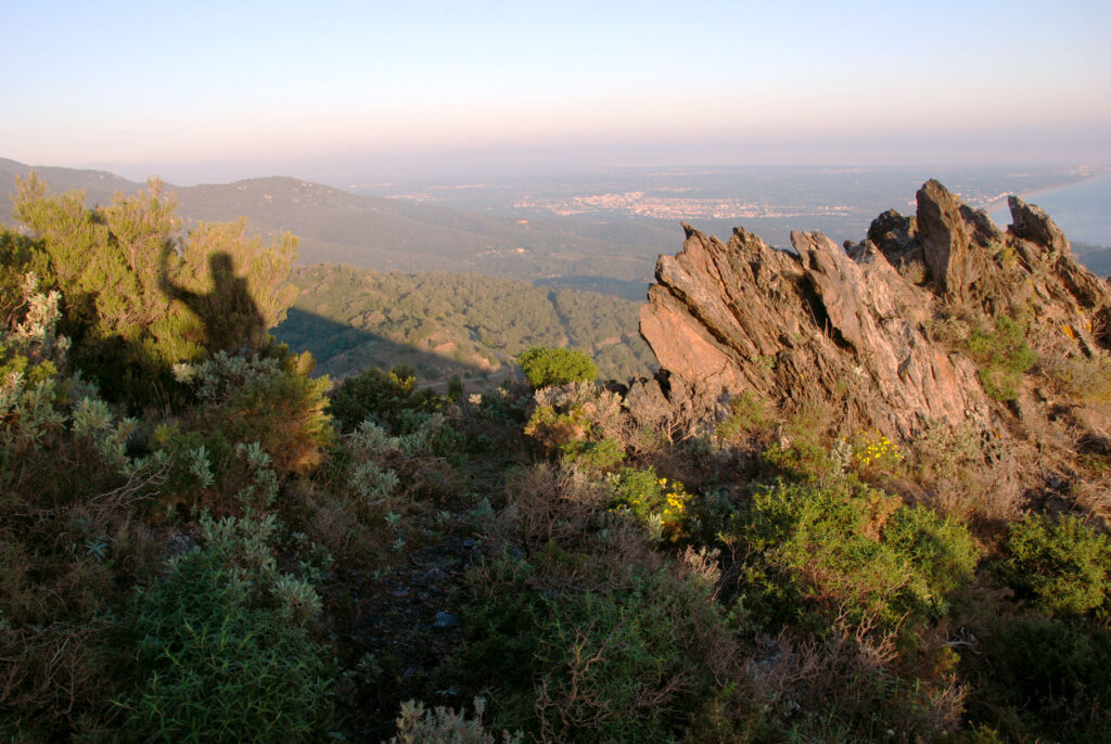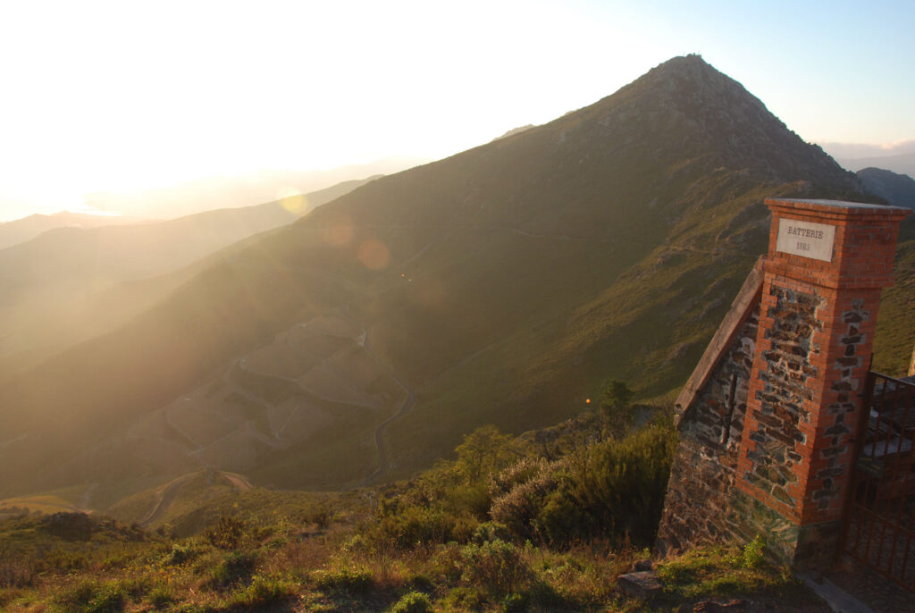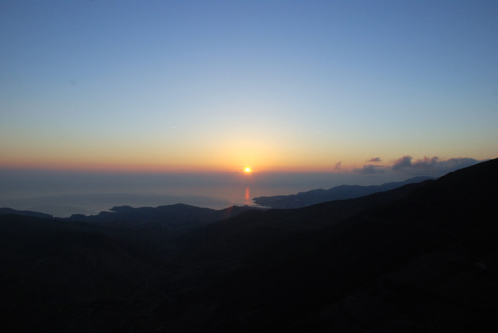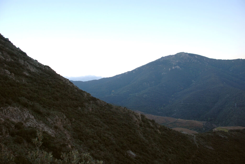 He subido a pie hasta donde la carretera empieza a bajar a Banyuls-sur-Mer y de ahí he subido un camino muy empinado a la Tour Madeloc. Todo esto mientras amanecía.