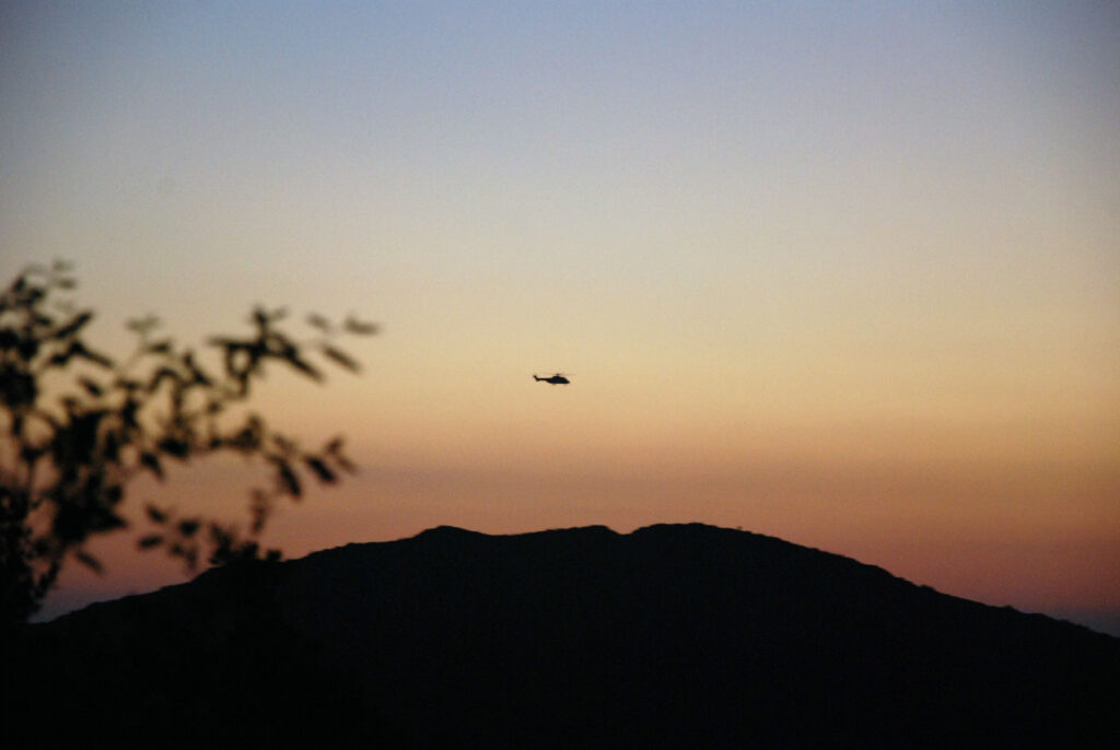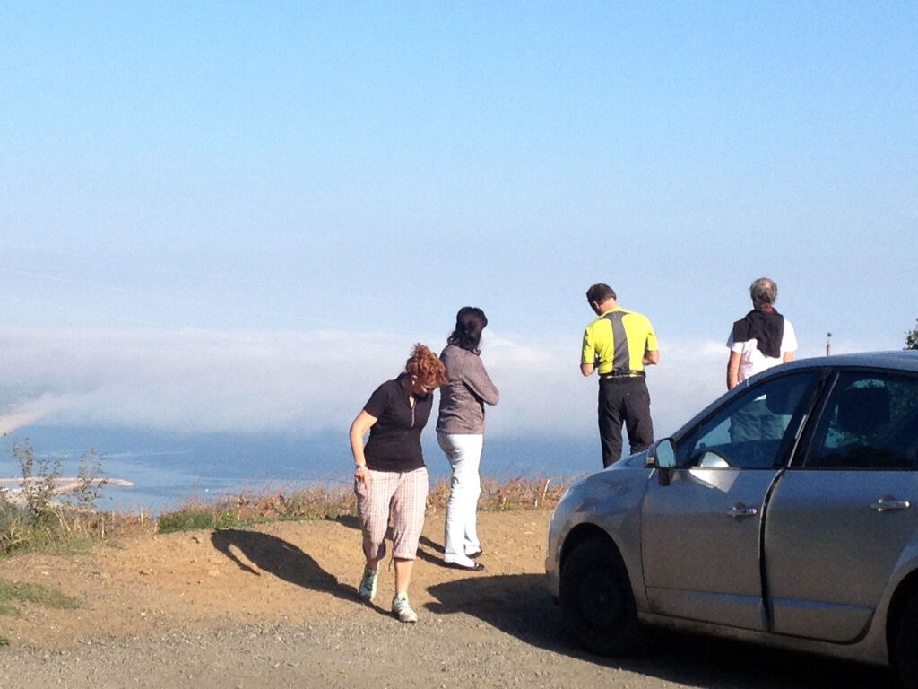 Lo mismo ha ocurrido cuando he llegado a la tienda: Había tres coches en la curva del mirador, los que he visto al ir bajando, a menos de 150 metros. Pues bien, he subido hacia la tienda sin que me vieran. Uno de los coches ha arrancado en ese momento y se ha ido hacia abajo y, las personas que iban en los otros dos estaban entretenidas con un perrito contemplando el paisaje. Así que continuamente: helicóptero, trabajadores, turistas. Me siento acompañado, ayudado, despertado, orientado por otras personas que no me hacen ningún daño y ni siquiera irrumpen en mi tan preciada soledad.