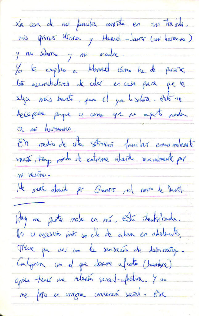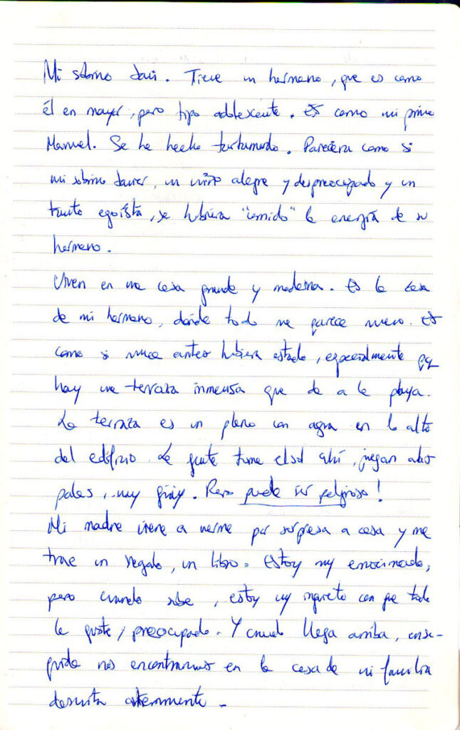 Por las últimas sesiones, he visto que el conflicto no está directamente relacionado con la ruptura sentimental, con la separación de Julen, sino con dejar la casa, mi casa. Siempre he asociado CASA-PAREJA como una unidad indisociable y esto ha ido en contra mía a nivel vivencial e incluso al enfocar el problema de la piel. Es cierto que el problema surgió cuando me fui a Lisboa y salí de mi casa, a donde por cierto ya no he vuelto… y, como vivía con mi pareja (Julen) en la casa prácticamente desde el principio, relacioné la aparición del eczema a la separación afectiva. Esto, unido a toda la literatura que relaciona los problemas de piel con la separación me hizo reafirmarme en esta postura. Sin embargo, acabo de darme cuenta de que antes de abandonar la casa de Barcelona, mi casa, estuvo un tiempo viviendo Pau el alemán conmigo. Pau no era mi pareja aunque yo lo pretendiera. No había amor, ni unión y, sin embargo, no tenía ningún problema de piel. El momento justo de la aparición del problema fue al llegar a Lisboa. Ahí empezó la separación con mi casa. Si se me fue el problema temporalmente con Adam fue porque me sentía recuperando la seguridad que da la pareja. Todo va relacionado al final pero, hoy por hoy, lo que tengo que hacer es procurarme la seguridad, ocupar mi lugar en la familia y en el mundo, hacer mi trabajo y vivir de ello.