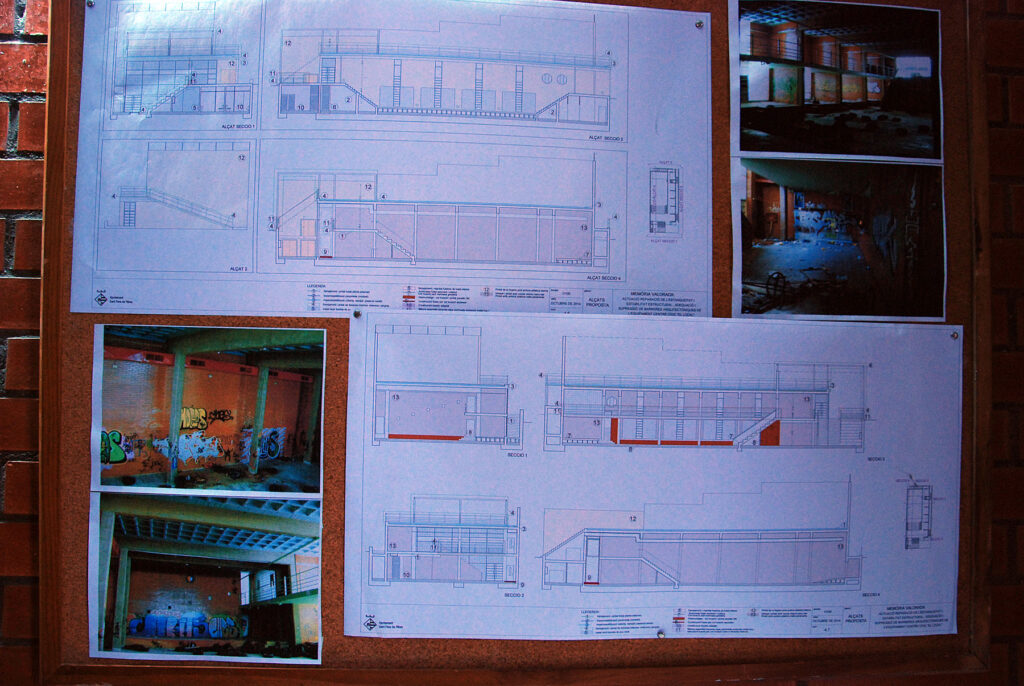 Por la mañana en Barcelona, paso por el monasterio-hospital de Sant Antoni Abat, al lado de mi casa. Después visito con Dominique una antigua fábrica reconvertida en estudios de artistas plásticos y por la tarde, en Ribes, visito las obras del Local.