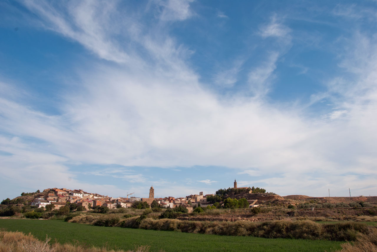 A mediodía, bien descansado, voy para Escatrón siguiendo el camino que interrumpí ayer. Al llegar al pueblo, voy a una fuente a por agua y un tío de unos cuarenta años en una silla de ruedas que va con otro tío rasta más joven, me invita tomar una cerveza con ellos. Al acercarme al de la silla de ruedas enseguida veo un agujero enorme en el centro de su garganta. Se ve que ha tenido un pasado difícil… Me cuenta que ha pensado en hacer el GR 99 en la silla de ruedas y me pasa su teléfono para que le explique cómo me ha ido cuando acabe mi viaje. A mí me parece una idea absurda. El rasta me sugiere que vaya a ver a Miguel, «el tío Miguel», un hombre que vive en una casa en pleno río antes de llegar a Chiprana. Cuando a las 17:00 h abre la tienda de ultramarinos compro pan, fruta y una botella de vino para tomármela con Miguel, me despido calurosamente de los hombres que acabo de conocer y sigo el camino.