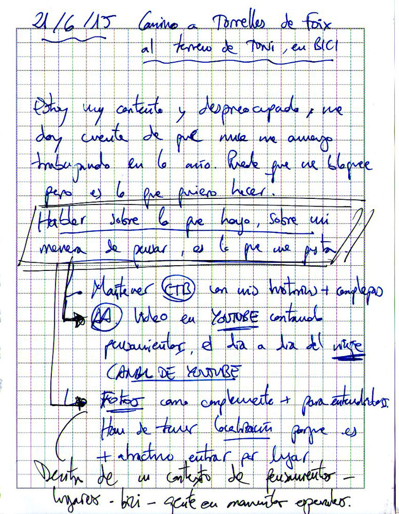 Voy en bici a casa de los padres de Toni, en una urbanización de Torrelles de Foix. Sabina y Toni van en coche. Luego pasaremos por el terreno que tiene Toni, con la idea de si nos gusta vivir todos allá.