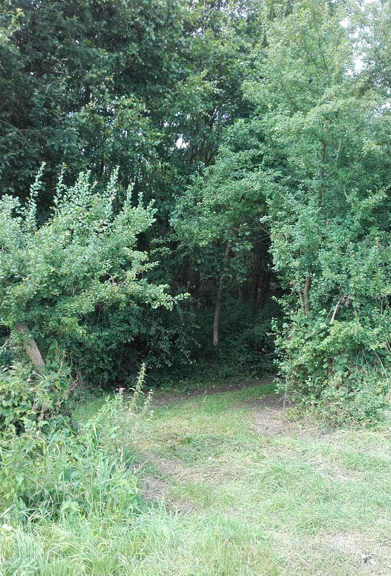 Hago una visita de reconocimiento antes de desayunar. Estoy en un bosque desde donde salen un montón de caminos, de senderos, incluso a Roma. Hay una carretera que llega hasta aquí que luego es privada y el camino asfaltado que he tomado desde la carretera de Guînes que se corta en la vía del tren. Pasan trenes cada tanto y vienen algunas personas a trabajar a la zona. Oigo algunos niños que deben venir a pasar el día cerca, por donde yo estoy, en el lugar ideal. No aparece nadie. Estoy tranquilo total. Son menos de las doce por lo que he podido comprobar al poder encender el móvil unos segundos. Hace buen día, nubes y claros. Buena temperatura. No tengo agua así que enseguida iré al pueblo y ahí decidiré qué hago, pero no tengo muchas ganas de moverme hoy. Estoy a unos cuatro días de París y Clem hasta el día 7 no está por ahí así que no tengo prisa y necesito tranquilidad, leer, escribir… Había querido ir muy rápido viniendo el día 3 a Francia. No sé si tengo dinero.