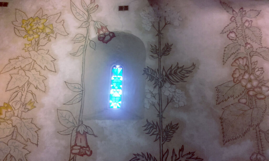 Salgo de Melun con la única idea clara de ir hacia el sur, puede que a Milly-la-foret, puede que hacia Nemours. En ambos lugares pasan ríos que pueden acompañarme y hacer mi día a día agradable. Llego a Barbizon entre carreteras. Continúo hasta Arbonne-la-foret y decido ir hacia Milly pasando por el bosque, orientándome por la posición del sol. Llego hasta unas rocas donde hay un hombre, dos mujeres blancas y una niña: Como una frutas y cereales mientras descanso. Necesito refrescarme, azúcar, vitaminas. Hace mucho calor y el camino por aquí es de arena, así que tengo que ir empujando la bici. Se va la familia. Me quedo solo y aprovecho para desnudarme un rato. Oigo gente, me pongo el culotte. Llegan un montón de negros de entre 30-40 años y una negra y niños blancos. Dan muy buen rollo. Me uno a ellos en sus piedras y les hablo de mi viaje y de que no trabajo. Mola. Se ríen. «El precio de la libertad». «La libertad no tiene precio». No me aconsejan ir por el Loira, así que definitivamente voy a Milly. Llego hacia las 4:30 h, un poco como si hubiese pasado por un desierto. Lo primero que hago es entrar en la Chapelle de Cocteau y me emociono. Hay muchas aromáticas en el jardín, alguna tóxica, utilizada sólo en homeopatía. Hay como siete u ocho variedades de menta, todas con diferente olor, entre ellas la menta de Milly y la acuática, que llevo desde está mañana. Estoy un poco ciego del calor así que cuando me cierran, me voy y me tomo una tónica y un pastel que me sientan de maravilla.
