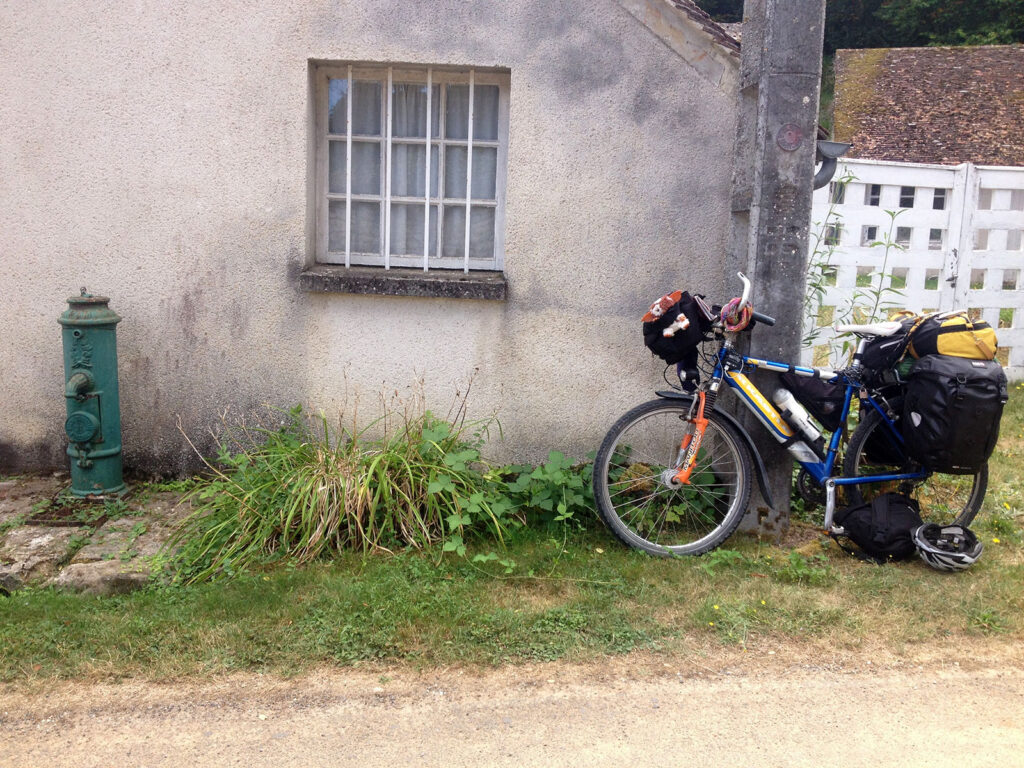 Me quedo a dormir junto a un canal putrefacto en la confluencia de varios caminos, en un bosquecillo junto a la carretera que va a Montargis. Es una solución rápida aunque no está mal: el suelo es completamente plano, no hay casi mosquitos, estoy muy cerca de Pithiviers (a donde quiero volver a desayunar mañana) y no necesito agua porque me he lavado un poco en la fuente de la plaza del pueblo y he llenado las botellas. He llegado aquí porque fue lo más fácil tras descartar el camping que está un poco más abajo porque costaba 8€ y no me dio buena impresión de entrada. Me sugirió que viniera al camping un tío sin dientes en el maxilar superior, sólo tiene colmillos. Muy buen rollo de tío, pero al sonreír daba un poco de miedo porque parecía un vampiro. Tenía una niña pequeña. Jean Marc, se llama y acababa de estar pescando cerca. Me sugirió que no fuera a Marruecos porque corría el riesgo de ser degollado. Su mujer es argelina.