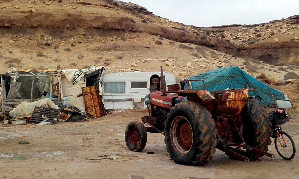 Me levanto antes que mi amigo. Él espera que su patrón venga durante el día de hoy para arreglar el tractor y poder trabajar con la sal que parece ser que luego vende en Agadir. Recojo todo y, después de desayunar, a las 10:01, salgo hacia Tarfaya tras despedirme de mi anfitrión con un buen abrazo.